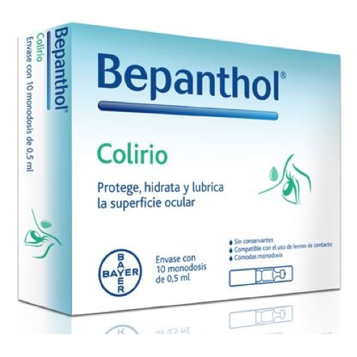 El colirio Bepanthol está indicado para aliviar las molestias asociadas al estrés mecánico (como el uso de lentes de contacto), estrés ambiental (aire acondicionado, viento, frío, sequedad o aire contaminado, como el humo del tabaco) y estrés visual causado por un esfuerzo ocular intenso, como estar frente a ordenadores.