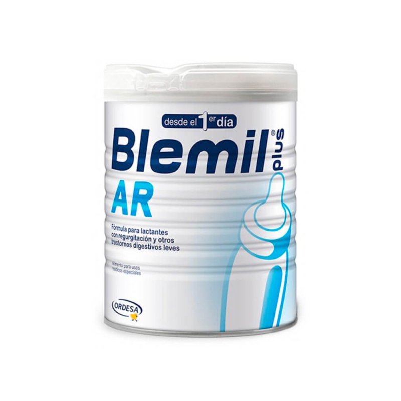 Blemil plus 1 AR es una fórmula para lactantes que satisface completamente las necesidades nutricionales del lactante desde el nacimiento hasta el sexto mes. Contiene harina de semillas de algarrobo, que reduce la frecuencia y volumen de las regurgitaciones, ayudando a mantener un correcto crecimiento y ganancia de peso. La harina de semillas de algarrobo asegura un aporte nutricional adecuado, sin incrementar el aporte calórico de la fórmula. Suplementada con Ácidos Grasos Poliinsaturados de Cadena Larga (AGPI-CL) ω-6 (Ácido Araquidónico) y ω-3 (DHA). Los AGPI-CL son necesarios para el adecuado desarrollo del sistema nervioso central y la función visual. Enriquecida en Prebióticos (GOS) y Nucleótidos, nutrientes que influyen en la maduración del sistema digestivo y aseguran el óptimo desarrollo del lactante. Los prebióticos promueven el crecimiento de lactobacilos y bifidobacterias, potenciando sus funciones, y los Nucleótidos intervienen en el crecimiento y diferenciación del tracto gastrointestinal. Además, estos compuestos presentan una acción inmunológica, ya que los GOS inhiben el crecimiento de patógenos en la flora intestinal gracias a su efecto bifidogénico, y los Nucleótidos favorecen la maduración de la respuesta inmune humoral y celular. Aporta Taurina y Carnitina. La Carnitina es necesaria para transportar los ácidos grasos a través de la membrana interna de la mitocondria, en cuyo interior se produce su oxidación y la obtención de energía a partir de los mismos. La Taurina es el aminoácido libre más abundante en el sistema nervioso y se encuentra en grandes concentraciones en el cerebro en desarrollo y en la retina madura. Presenta relación proteínas séricas/caseína 60/40. Proporciona un equilibrado aporte en vitaminas, minerales y aminoácidos que cumple con las recomendaciones de las ESPGHAN. La eficacia de Blemil plus 1 AR ha sido demostrada clínicamente. Blemil plus 1 AR reduce el volumen y la frecuencia de las regurgitaciones de los lactantes, favoreciendo el vaciamiento gástrico sin interferir en la absorción de otros nutrientes. Debido a su contenido en harina de semillas de algarrobo, tiene una consistencia elevada que lo hace adecuado en aquellas situaciones en las que el lactante presenta vómitos y regurgitaciones. Blemil plus 1 AR debe ser utilizado bajo supervisión médica. Blemil plus 1 AR es un alimento dietético destinado a un grupo especial de lactantes, pudiendo ser consumido como única fuente de alimento desde el nacimiento hasta el sexto mes.