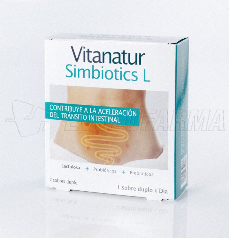 Vitanatur Simbiotics L es un complemento alimenticio compuesto por una mezcla de prebióticos, probióticos y lactulosa, que contribuye a la aceleración del tránsito intestinal.